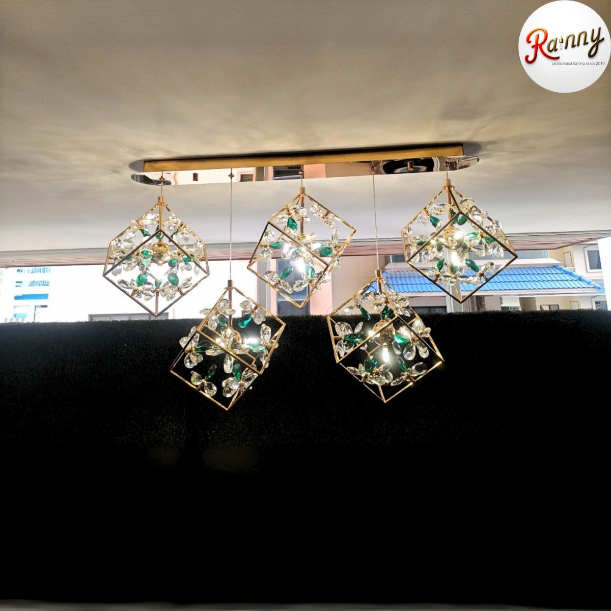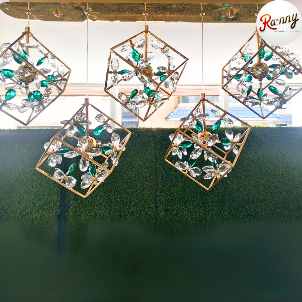 โคมไฟคริสตัล ประดับด้วยคริสตัลสี ใช้ตกแต่งห้องโถง ,ห้องรับแขก, โถงบันได หรือโต๊ะทานข้าว ให้อารมณ์การแต่งห้องแบบเรียบ เท่ หรู ไม่เหมือนใคร