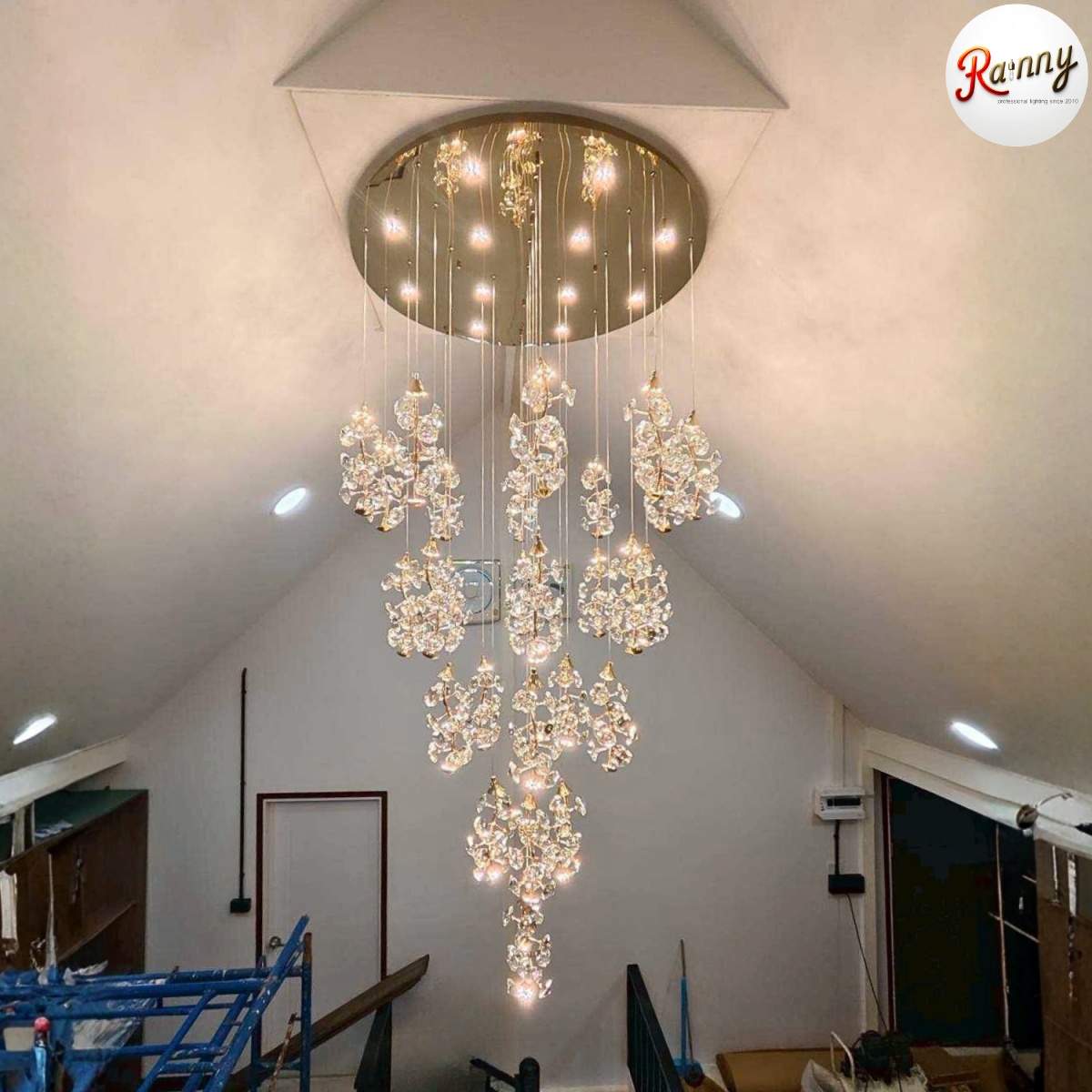นิยมใช้บริเวณโถงสูง ห้องนั่งเล่น ห้องทำงาน โถงบันได หรือร้านค้า ร้านอาหาร โรงแรม ให้อารมณ์การแต่งห้องแบบหรูหรามีระดับ สามารถ ปรับสั้น ยาว เพื่อแต่งให้เข้ากับความสูงของห้อง และความชอบส่วนตัวได้
